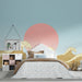 Gyermekszoba tapéta | Stilizált hullámok és lenyugvó nap