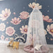 Adj hozzá egy kis varázslatot gyermeked szobájához ezzel a bájos gyermek tapéta-val, amely egy aranyos mosómedvét ábrázol pasztell virágok között rejtve. A rózsák és a kozmosz virágok finom árnyalataiban virágzanak, varázslatos dekorációt teremtve, amely serkenti a képzeletet.