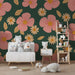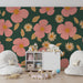 Nursery room wallpaper | Pink flowers and yellow daisies on a green background