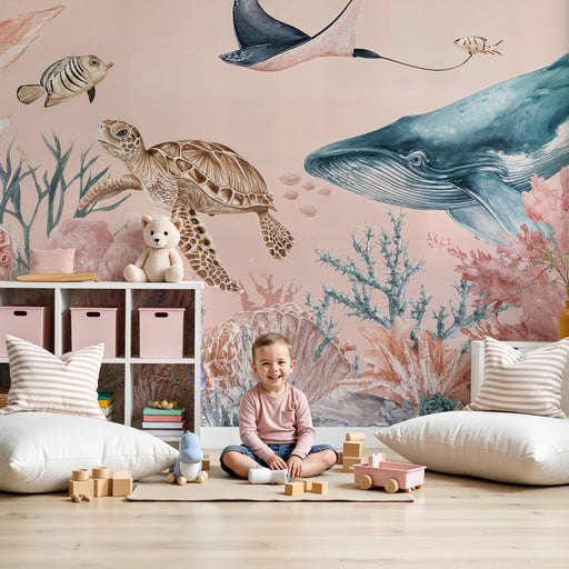 KidsWallAlakítsa át tereit tengeri tapétánkkal, mely lenyűgöző tenger alatti jelenetet ábrázol pasztell színekkel. A design része egy teknős, rája, bálna é...