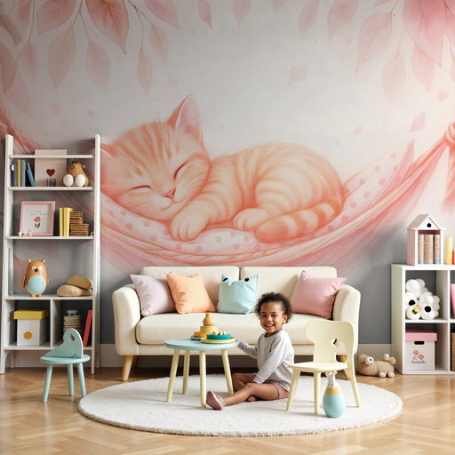 KidsWallHozzon be egy kis nyugalmat és puhaságot a térbe a mi alvó macska tapétánkkal. Ez a design egy békésen alvó cica ábrázolásával készült egy függőágy...