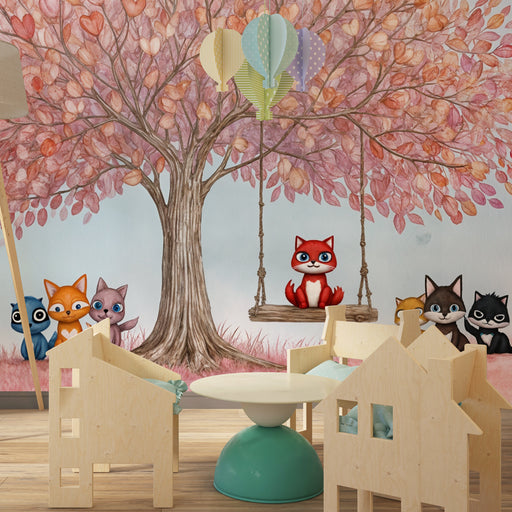 KidsWallAlakítsd át gyermeked szobáját egy álomvilággá a mi gyermek tapétánkkal, mely egy varázslatos fa tele édes állatokkal és szív alakú hőlégballonokka...