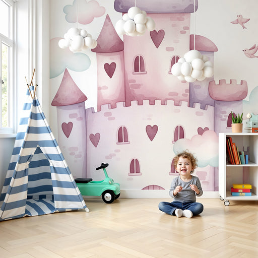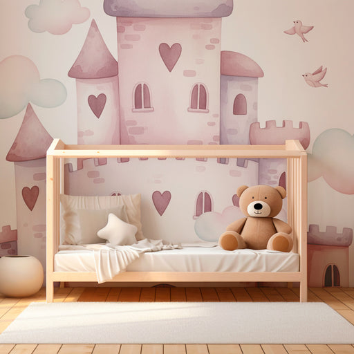KidsWallAlakítsd át gyermeked szobáját egy igazi álomkirálysággá ezzel a gyermek tapétával, amely egy aranyos pasztell kastélyt ábrázol. A lágy rózsaszín é...
