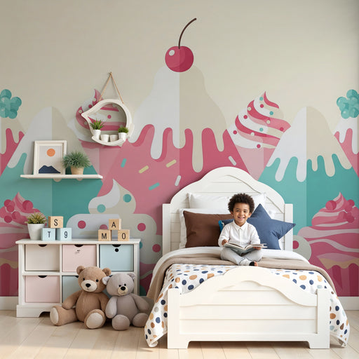 KidsWallAlakítsa át gyermekszobáját egy igazi édességparadicsommá ezzel a gyerekszoba tapétával, mely édes mintákkal van díszítve. Színes fagylalt-hegyek, ...
