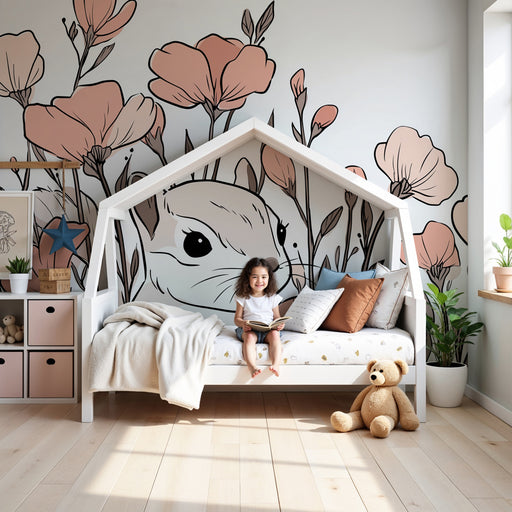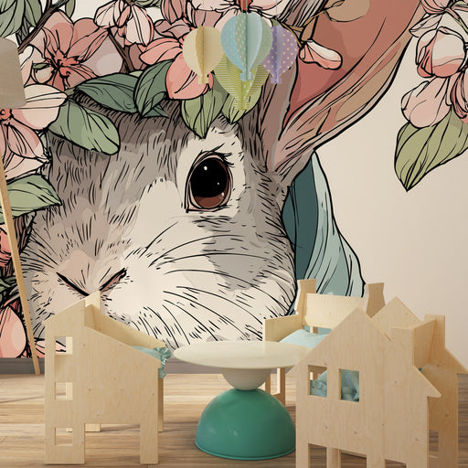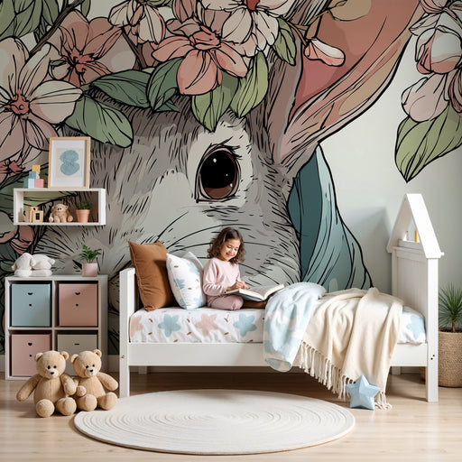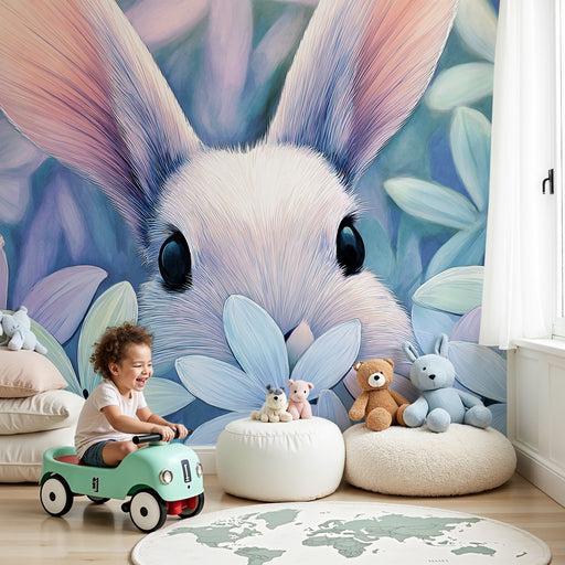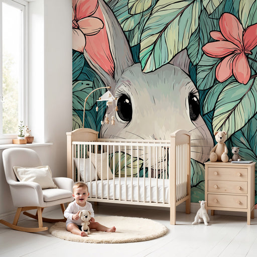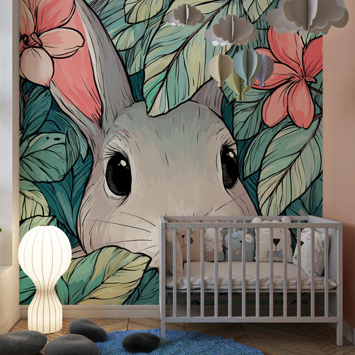 KidsWallDisznózd ki gyermeked szobáját ezzel a varázslatos tapétával, melyen egy aranyos nyuszi tűnik elő egy virágos vízesésből. Az édes és bölcs tekintet...