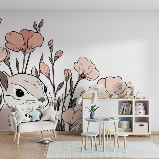 KidsWallMergeljen el egy elbűvölő világba ezzel a gyermekszoba tapétával, melyen egy aranyos mókus körül virágok láthatók. Minden részlet, a rózsaszín szir...