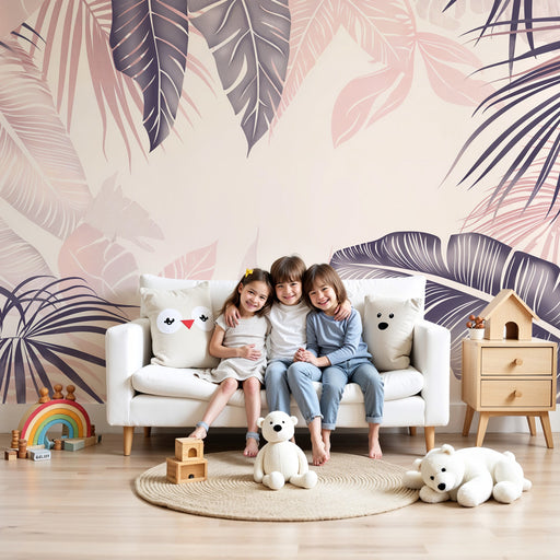 KidsWallFrissítse fel gyermekszobáját ezzel a gyönyörű trópusi levelekkel díszített gyermek tapétával. A finom és változatos levélminták, lágy rózsaszín és...