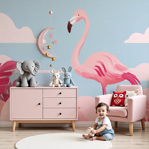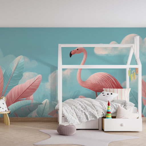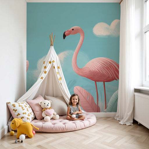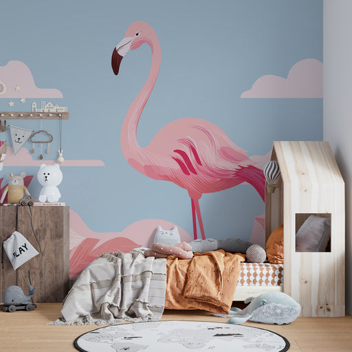 KidsWallVigyen egy kis lágy érintést és varázslatot gyermekének szobájába ezzel a gyermek tapéta amely egy pompás rózsaszín flamingót ábrázol. Egy finom sz...