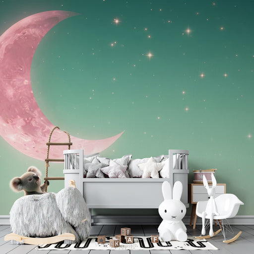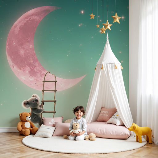 KidsWallAlakítsa át kisgyermeke szobáját ezzel a varázslatos gyerektapéta, amelyen egy aranyos koala mászik fel egy létrán egy hatalmas rózsaszín hold felé...
