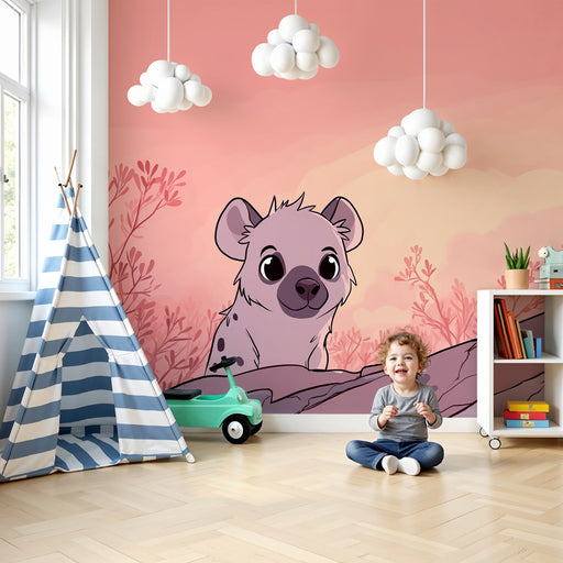 KidsWallAlakítsd át gyermeked szobáját egy varázslatos világgá ezzel a gyerekszoba tapétával, melyen egy aranyos, kíváncsi hiéna látható, a meleg színekkel...