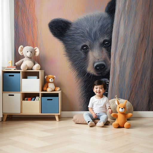 KidsWallAlakítsa át gyermekszobáját egy békés erdős szentélyvé ezzel a gyermek tapétával, mely egy aranyos medvét ábrázol, aki egy fa mögé rejtőzött. Az ex...