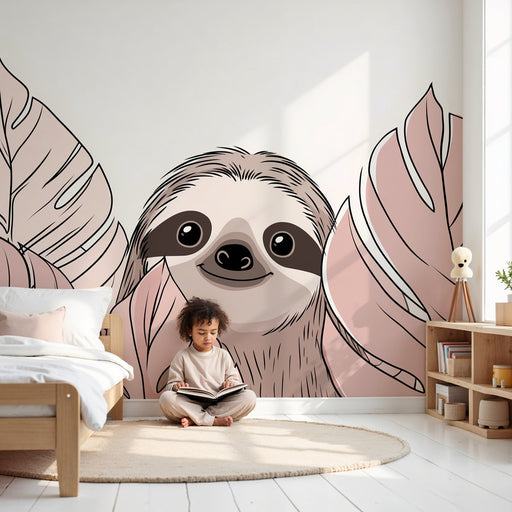 KidsWallMélyedjen el a gyengédség és a nyugalom világába ezzel a gyerekszobai tapétával, amelyen egy aranyos lajhár látható, ahogy gyönyörű trópusi levelek...