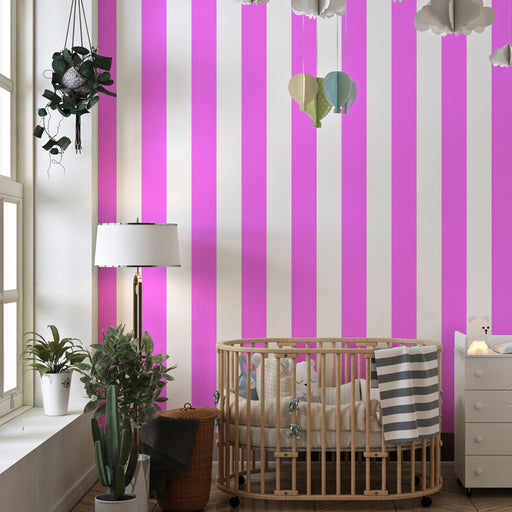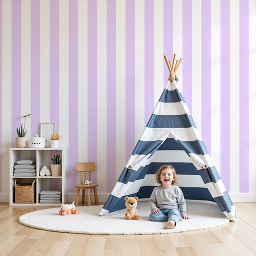 KidsWallVigyen egy csipetnyi finomságot és puhaságot gyermekszobájába ezzel a lila csíkos tapétával. A függőleges csíkok, világos és pasztell árnyalatok vá...