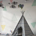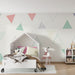 Gyermekszoba tapéta | Színes háromszögek és játékos minták világos háttéren