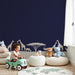 A fehér sziluettek gyönyörűen kontrasztosak a sötét hátterűvel, modern és elegáns érintést adva a dekorációnak. Minden részlet, a zsiráfok hosszú nyakaival a többi állat kecses formáival, gondosan megtervezve, hogy serkentsék gyermeked képzeletét és felkeltse kíváncsiságát a természet iránt.