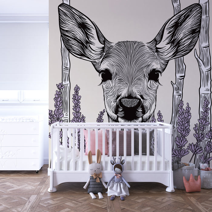 Gyermekszoba tapéta | Finom szarvas levendulával körülvéve