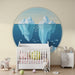 Mélyedj el egy lenyűgöző tengeri világba ezzel a gyerekszoba tapétával, amely lenyűgöző jéghegyeket és vibráló vízi életet ábrázol. Egy kör alakú keretben a jégmezők a mély vizekből emelkednek ki, míg a halak békésen úsznak körülöttük, egy nyugodt és lenyűgöző hangulatot teremtve.