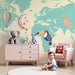 Alakítsa át gyermekszobáját egy valódi utazássá a világ körül ezzel a vidám világtérképet ábrázoló gyermek tapétával. Az ikonikus állatok, mint a zsiráf, a kenguru, a tukan és a koala kalandos és felfedező hangulatot kölcsönöznek ennek a térnek.