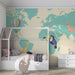 Gyerekszoba tapéta | Kék és bézs világtérkép vicces állatokkal