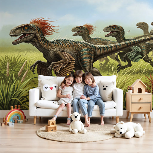 KidsWallÁlakítsd át gyermeked szobáját egy igazi őskori világgá ezzel a gyermek tapétával, mely dinamikus raptorokat ábrázol. Ezek a lenyűgöző teremtmények...