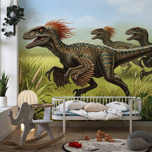 Afficher tous les détailsGyerekszoba tapéta | Vélociraptor verseny egy ősi réten