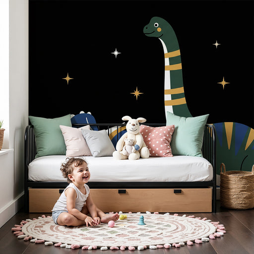 KidsWallAlakítsa át gyermekének szobáját egy igazi őskori világgá ezzel a gyermek tapétával, amely vidám dinoszauruszokat ábrázol csillagos ég alatt. Egy k...
