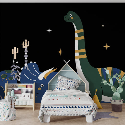 Afficher tous les détailsGyermekszoba tapéta | Színes dinoszaurusz egy csillagos égbolt alatt