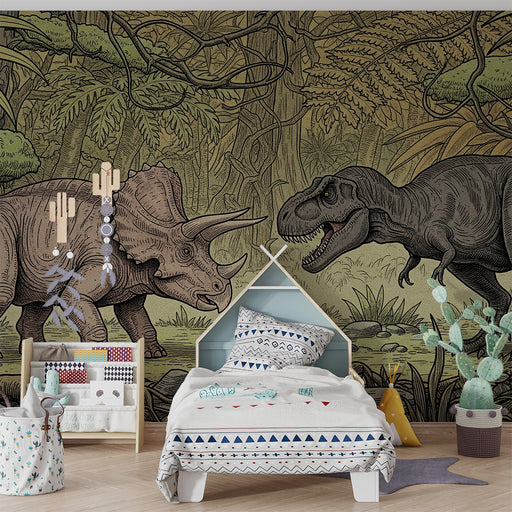 KidsWallMergeljen el a dinoszauruszok lenyűgöző világába ezzel a gyerekszoba tapétával, amely egy Triceratopsot és egy Tiranózaurust ábrázol, akik egy ősi ...