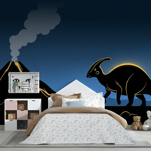 KidsWallMélyesze a gyermekét egy lenyűgöző őskori világba ezzel a gyerekszoba tapétával, amely egy pompás dinoszauruszt ábrázol egy kitörő vulkán közelében...