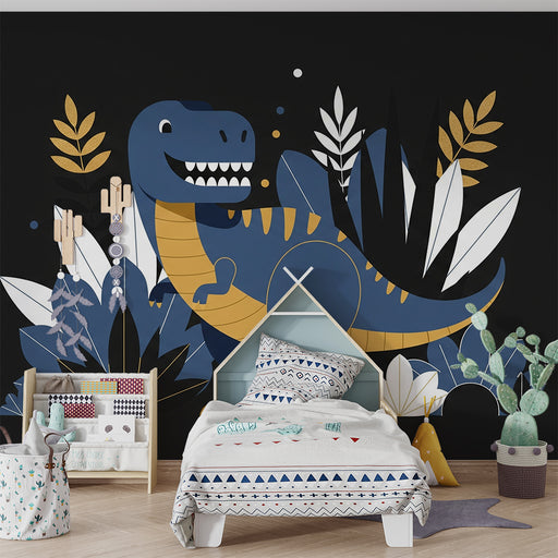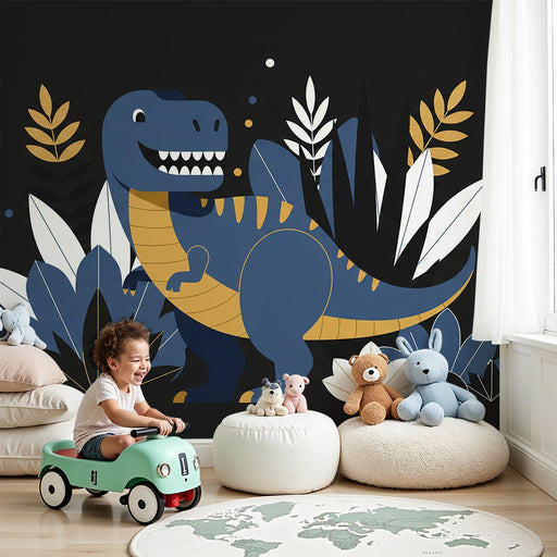 Afficher tous les détailsGyermekszoba tapéta | Aranyos dinoszaurusz trópusi lombbal