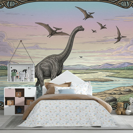 Afficher tous les détailsGyerekszoba tapéta | Ősi tájban uralkodó dinoszauruszok