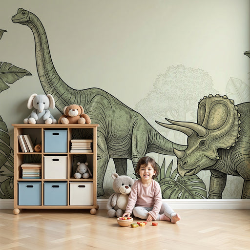 KidsWallAlakítsd át gyermeked szobáját egy lenyűgöző ősi világgá ezzel a gyermek tapétával, amely aranyos dinoszauruszokat ábrázol. Egy dinoszaurusz anya é...