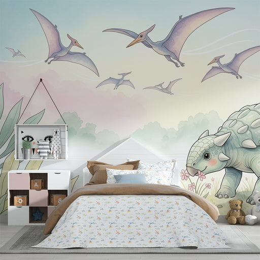 KidsWallAlakítsa át gyermekének szobáját egy valódi időutazássá ezzel a gyerekszoba tapétával, amely egy lenyűgöző Ankylosaurus-t ábrázol egy ősi dzsungelb...