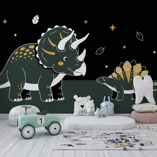 Afficher tous les détailsGyerek szoba tapéta | Vidám dinoszauruszok fekete háttéren
