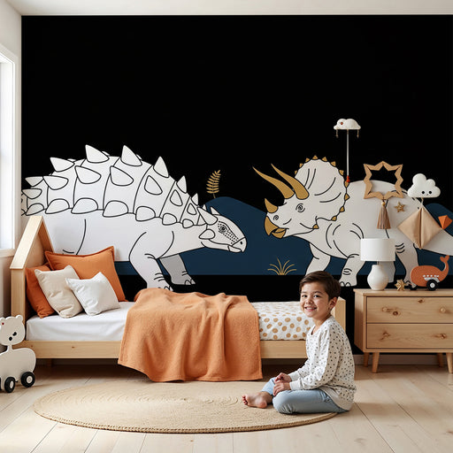 KidsWallAlakítsa át gyermekszobáját egy lenyűgöző őskori világgá ezzel a gyerekszoba tapétával, amely egy méajestikus dinoszauruszt ábrázol. Elegáns fekete...