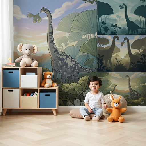 KidsWallAlakítsa át gyermekszobáját egy lenyűgöző ősi világgá ezzel a gyerekszoba tapétával, amely lenyűgöző dinoszauruszokat ábrázol. Egy karcsú Brachiosa...