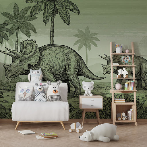KidsWallAlakítsa át gyermekszobáját ezzel a gyerekszoba tapétával, amelyen egy aranyos triceratopsz szerepel. Ez a jellegzetes dinoszaurusz élénk zöld árny...