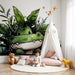 A trópusi levelek és zöld növények között ez a színes dekoráció serkenti a képzeletet és felfedezésre hív. A zöld árnyalatok és a növények finom részletei nyugtató hangulatot teremtenek, tökéletes játék- és pihenőkörnyezetnek.