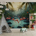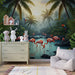 Gyermekszoba tapéta | Rózsaszín flamingók és trópusi dzsungel színes papagájokkal