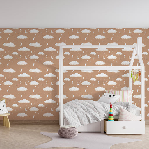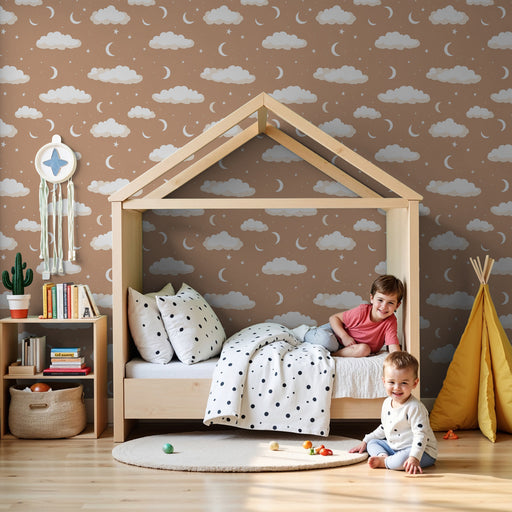 Afficher tous les détailsGyermekszoba tapéta mintákkal | Csillagos égbolt felhőkkel és holdakkal