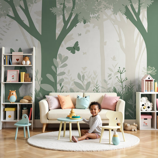KidsWallHozzon létre egy békés menedéket gyermekének szobájában ezzel a gyermek tapétával, amely egy nyugodt erdőt ábrázol. Az elegánsan rajzolt magas fák ...