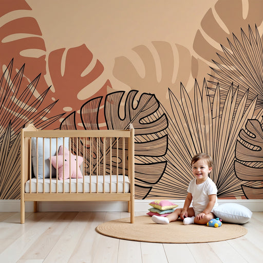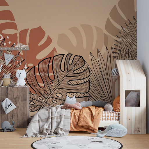 Gyermekszoba tapéta | Modern trópusi levelek terrakotta árnyalatokban