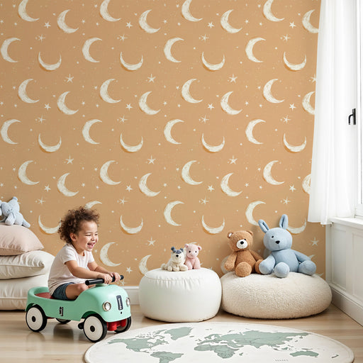 KidsWallAlakítsa át gyermekének szobájának világát ezzel a hold és csillag mintájú tapétával. Az narancssárga háttér meleg és nyugtató hangulatot teremt, i...