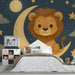 Gyermekszoba tapéta | Aranyos oroszlán egy csillagos holdon