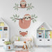 Alakítsa át gyermekszobáját egy igazi békés oázissá ezzel a játékos tapétával, melyben aranyos állatokat láthatunk trópusi környezetben. A tetején egy mosolygó bagoly pihen egy ágon, míg középen egy nyugodt lajhár kecsesen ringatózik, jelképezve a nyugalom szellemét. Lent, egy vidám róka ad egy kis jókedvet az egésznek, boldogságot sugározva.