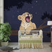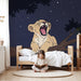 Gyerekszoba tapéta | Kis oroszlán, aki az csillagok alatt üvölt.