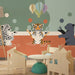 Alakítsa át gyermekszobáját játékos és szórakoztató világgá ezzel a gyermek tapétával, melyen pajkos állatok szerepelnek. Egy tigris, egy leopárd és egy kis párduc vízben játszanak, színes lufikkal zsonglőrködve, melyek vidámságot visznek a dekorációba.