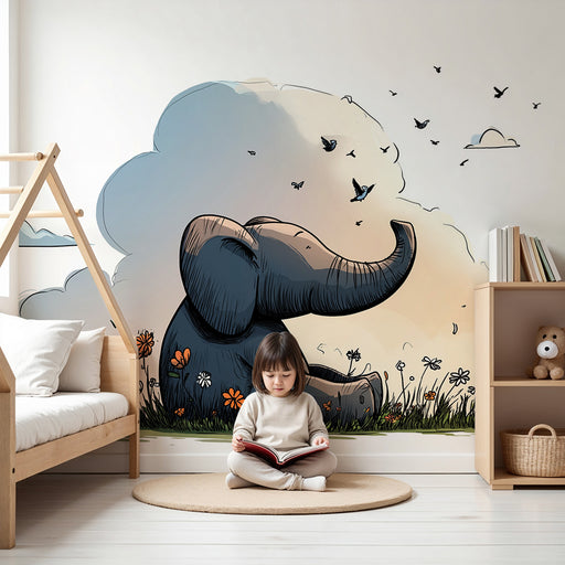 Alakítsa át gyermekszobáját egy vad kalanddá ezzel a illusztrált falmatricás tapéta segítségével, amely bájos elefántokat mutat be. Minden elefántot finoman körbevesznek a finom és puha növényzetek, amelyek nyugodt szavannai hangulatot idéznek, így játékos és nyugtató tér jön létre.