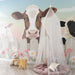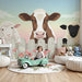 Alakítsd át gyermeked szobáját egy igazi vidéki zugrá, ezzel a gyermek tapéta segítségével, amelyen aranyos farm állatok jelennek meg. Egy kíváncsi tehén és két pajkos bárány hajolnak egy fa kerítés fölé, élénk virágokkal körülvéve, amelyek színt és életet adnak az egészhez.