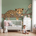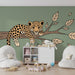 A nyugtató zöld háttér békés hangulatot teremt, ideális a pihenéshez és a képzelet szárnyalásához. Az artistikus részletek, a leopárd foltjaitól a levelek elegáns kontúrjaiig, a kalandra és az állatvilág felfedezésére csábítanak. Ez a tapéta tökéletes a fiatal kalandorok kíváncsiságának ösztönzésére.